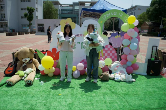 本次活動還設計了拍照打卡環節,兩處用綠意盎然的草皮和玩偶、背景、氣球搭建的“攝影棚”成了師生拍照打卡的熱門區域。拍照打卡完成后,同學們還可以領取“垃圾卡”和“蝴蝶卡”兩種卡片,分別用于抒寫壞心情,將卡片扔進“情緒垃圾桶”,將描繪的“心”愿望粘貼到蝴蝶卡上。