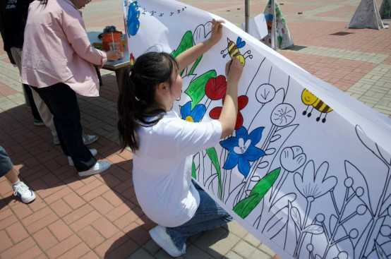 為了營造氣氛,心理社還聯合了其他30個社團進行了社團文化交流,利用當下最時興的“露營”元素——帳篷,各個社團在帳篷上繪制自己社團的特色活動和主題,在活動現場利用帳篷搭建了一個“相愈集市”,同時在每個帳篷中間展示了我校心理繪畫的優秀作品,全方位展示了學生豐富多彩的校園生活。