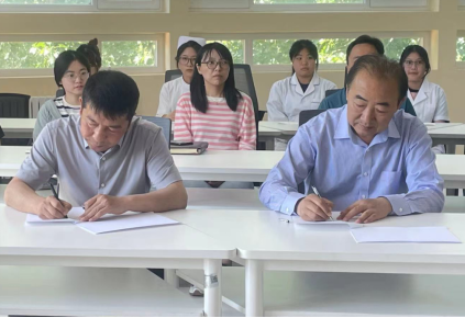 活動中,天津市醫學考試中心黨支部書記、主任曹偉為我校受助學生頒發資助金,并與我校黨委書記陳振鋒代表雙方單位簽訂了資助協議書。