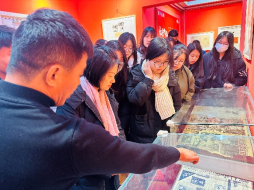 師生們在天津市青年美術書法協會黨支部書記、副主席兼秘書長闞傳好,天津市收藏品流通行業協會會長姜春星和參展“老物件”的收藏者帶領下,現場參觀了各種具有年代感的展品。通過聆聽現場講解,大家了解到一件件靜態物品背后所承載的歷史背景、歷史故事、歷史人物,每一件充滿年代感的老物件都在講述著滄桑歲月、風雨歷程。師生們深刻感受到紅色主題藝術教育對了解城市文化的重要作用,物件雖小,卻承載著一代又一代人的情感與奮斗史。
