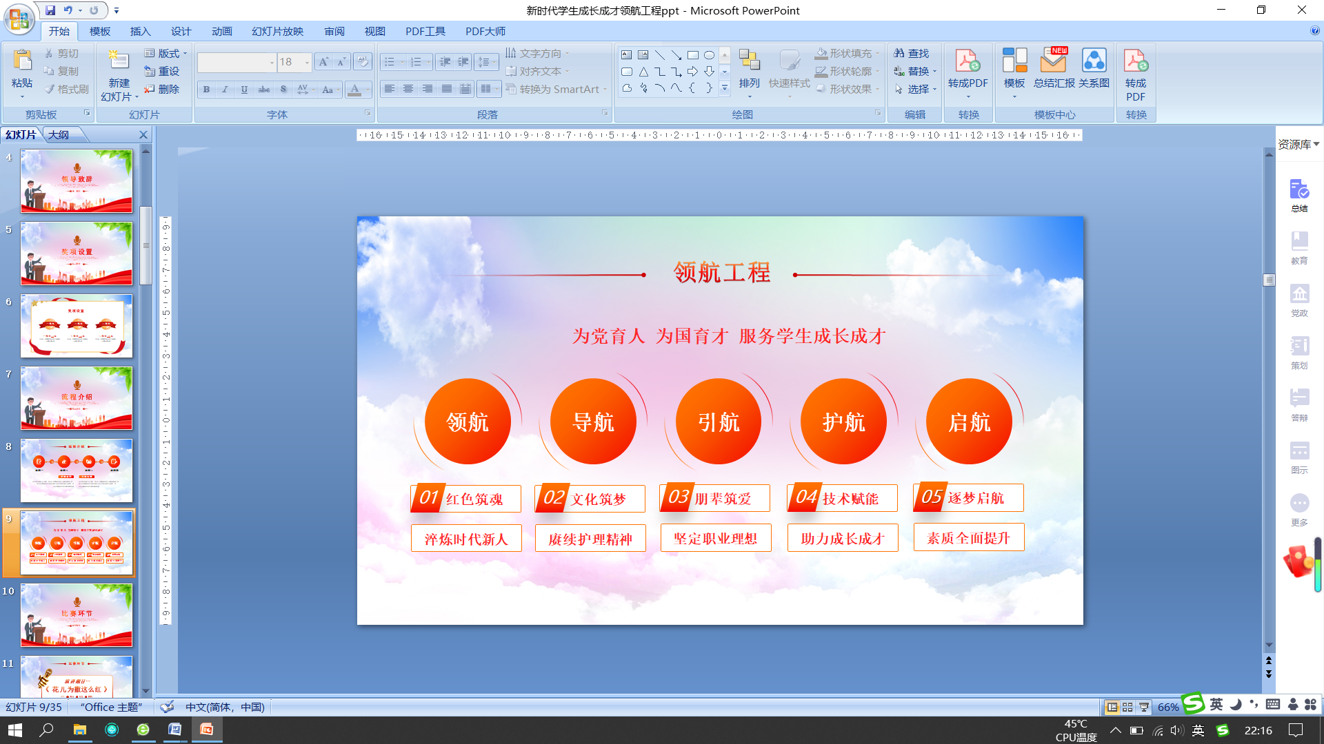 《“領航、導航、引航、護航、啟航”——新時代青年培育工程》由護理黨支部報送,介紹了護理黨支部依托黨建“雙創”和全國“雙高”專業建設項目,著力推進“三全育人”綜合改革,從“領航、導航、引航、護航、啟航”五個維度全面謀劃、系統推進新時代青年培育工程,創新實施“四段三階一貫穿”職業素養活動課程,引導青年學生厚植愛國情懷,夯實專業素養,努力成為德智體美勞全面發展的護理人才。