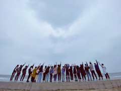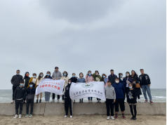 活動的第二站,大家來到東疆親海公園,讓很多從未見過大海的同學們親眼感受了大海的波瀾壯闊。參觀時恰逢漲潮,伴隨著陣陣海風,海面波濤翻滾,海天一色,在場同學無不被壯闊的海景所震撼,都發自內心地露出了燦爛的笑容。