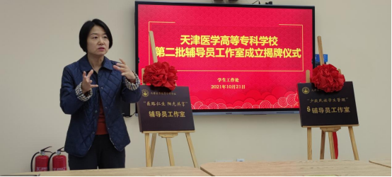 在學校各級領導的支持下,2021年黨委學工部啟動了第二批輔導員工作室的建設工作,分別是專職輔導員發如合·阿迪力負責的“沙漠胡楊--少數民族學生管理”輔導員工作室和專職輔導員白玉韜負責的“醫路仁生 陽光共享”輔導員工作室。輔導員工作室的建設也是我?!半p高”建設中的重要內容。經過前期近半年的試運行,黨委學工部于10月21日下午在教師發展中心舉行了成立揭牌儀式,校黨委副書記、副校長左紅應邀出席,兩個輔導員工作室的成員代表、指導教師一同參加。
