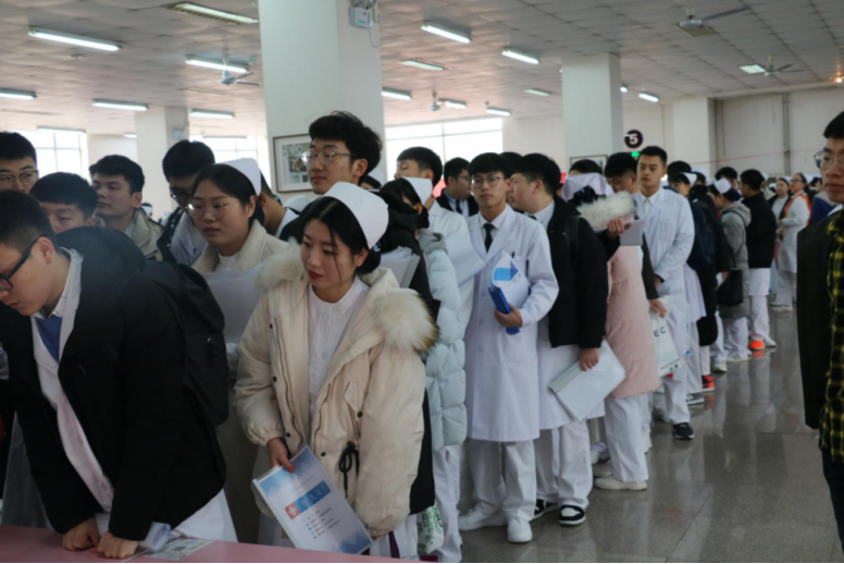 上午9點(diǎn)30分,千余名2020屆畢業(yè)生以班級(jí)為單位,井然有序地進(jìn)入會(huì)場(chǎng),會(huì)場(chǎng)氣氛迅速升溫,天津市兒童醫(yī)院、天津市急救中心、天津市胸科醫(yī)院等展位前排起了長(zhǎng)龍。