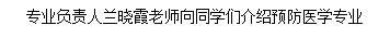 預(yù)防醫(yī)學(xué)專業(yè)負(fù)責(zé)人蘭曉霞老師,給同學(xué)們講述預(yù)防醫(yī)學(xué)專業(yè)課程是結(jié)合全生命周期從基礎(chǔ)、臨床、專業(yè)三個層次的綜合設(shè)計。并介紹了預(yù)防醫(yī)學(xué)專業(yè)課程設(shè)計,要求同學(xué)們在學(xué)好理論知識的同時,更要扎實掌握實踐技能。還結(jié)合課程對未來就業(yè)領(lǐng)域和就業(yè)崗位做了介紹。最后,蘭曉霞老師重點強調(diào)“預(yù)防專業(yè)的學(xué)生必須首先是一個有溫度的勤奮的人,并鼓勵每位同學(xué)以飽滿的熱情投入接下來的學(xué)習(xí),認(rèn)真完成每件事。