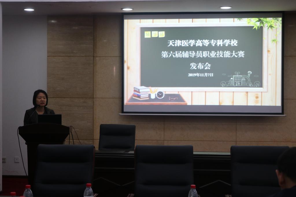 2019年11月7日,我校在第五會議室舉行天津醫學高等專科學校第六屆輔導員職業技能大賽發布會。校黨委副書記、副校長左紅應邀出席,各學工支部書記、專兼職輔導員近50人參加。發布會由學生工作處副處長張鑫主持。