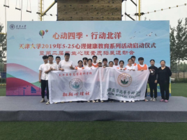 5月12日我校翱翔心理社素拓隊伍代表我校應邀參加天津大學主辦的第二屆學生心理素質拓展運動會邀請賽。當天早上8點同學們就在北洋園校區心理素質拓展基地集合完畢,與片區其他院校以及天大本校多支隊伍一起布置自己的展示區,同學們個個精神飽滿充滿活力。在主持人宣布運動會正式開幕后,運動員代表和裁判員代表分別進行了莊嚴宣誓,27支參賽隊伍身著整齊的隊服,喊著響亮的口號,高舉隊旗進行充滿激情和創意的團隊風采展示。在隨后的比賽項目中,歡笑聲、吶喊聲回蕩整個素拓基地,“毛毛蟲”、“旋風跑”“、同心鼓”、“袋鼠跳”、”挑戰NO.1”等一系列項目有序開展。雖然中途下起了雨,但素拓賽場上同學們熱情不減,大家在活動中奔跑、在汗水中品味快樂,更通過這種“體驗式學習”的方式,提升團隊協作、溝通執行、信任和合作等各項心理素質。為了體現心理健康的平衡藝術,本次運動會特別邀請了天津農學院的老師和同學們,在現場帶來了慢生活園藝療法體驗活動。園藝療法是將園藝與心理學相聯系,通過園藝活動達到身心改善的一種心理療法。在激情與活力迸發的素拓場上,安靜的園藝活動與運動會產生了美妙的互動。最終我校代表隊獲得本次大賽“團隊拼搏獎”和“優秀領隊獎”,同學們既收獲了團隊合作的愉快體驗,又留下了與兄弟院校同學滿滿的友誼和回憶。