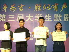 一等獎作品《知返》經過師生的共同修改、完善后更名為《心聲》,代表我校參加了由天津市教育委員會和天津市學生心理健康教育發展中心主辦的“心舞臺 心風采”第十四屆高校大心理劇大賽,并獲得大賽三等獎。