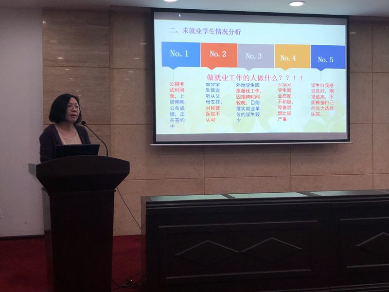 會上,護理系、醫學系、口腔系、公衛系、藥檢系和醫療技術系等六系負責人先后就目前就業工作情況做了匯報,深入客觀分析了學生未就業原因,并針對問題提出了詳細推進就業工作的思路與舉措。學生工作處負責人介紹了我校學生就業工作總體情況,并對就業現狀進行的深入剖析,尚未落實就業單位的畢業生是今后工作的重點,各系要加強個性化指導,全程提供就業服務并持續追蹤就業信息,做好就業信息的反饋工作,根據天津市大中專畢業生就業指導中心的要求,布置了近期就業工作安排。