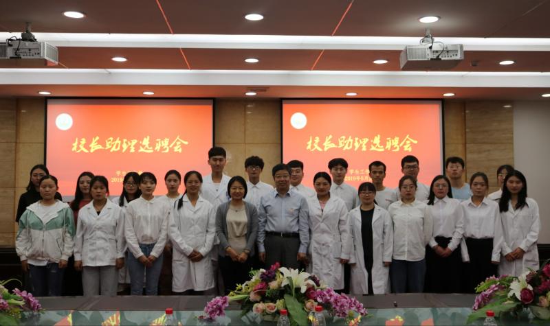 2019年5月22日我校在第五會議室召開學生校長助理選聘會,校領導張彥文校長和紀檢委左紅書記應邀參加,相關職能處室負責人、各學工黨總支書記、學工負責老師及學生代表一同參加。