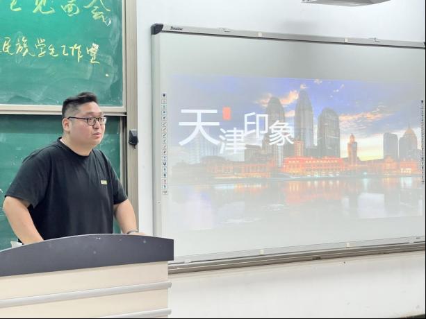 最后,黃煒老師帶來了天津人文及特色小吃的精彩介紹。從天津的歷史文化到風土人情,從美味的煎餅果子到鮮香的狗不理包子,讓新生們對即將生活的城市有了更深入的了解,增添了對大學生活的期待。