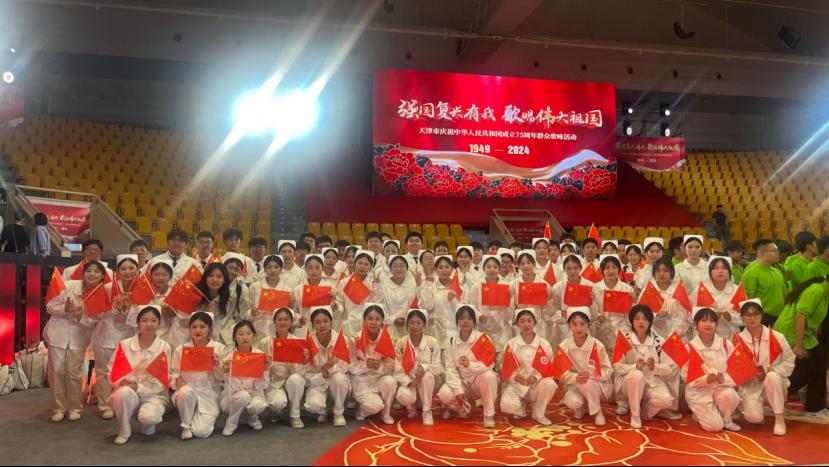 隨著激昂的旋律在津城上空回蕩,一股濃厚的愛國情懷迅速彌漫。同學們身著潔白的護士服,精神煥發地站在舞臺中央,他們的目光堅定而自信。他們以高亢激昂的歌聲,表達了對祖國深沉的熱愛與崇高的敬意,彰顯了新時代青年的風采與責任。