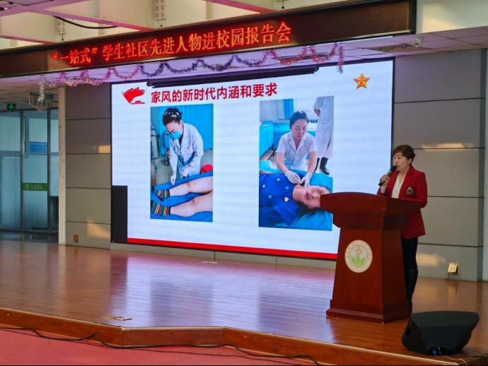 王冠羽主任從家風傳承、職業經歷、事跡分享等方面與學生進行分享,鼓勵同學們不忘初心、牢記使命,在醫學道路上砥礪前行,為祖國醫藥衛生事業不懈奮斗,堅守崗位,擔負重任,造福患者。