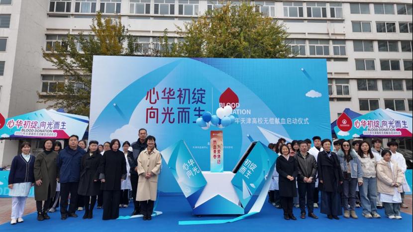 伴隨全場師生的倒計時,參加活動的領導共同拉動啟動繩,氣球攜著希望升空,橫幅展開青春誓言,2025年天津高校無償獻血活動正式啟動。