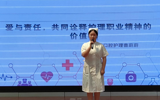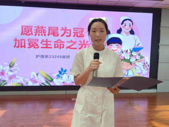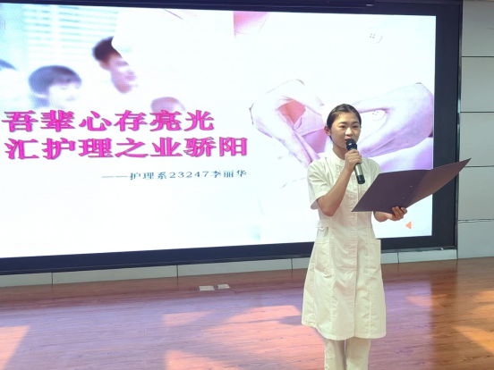 通過前期全系各班級的報名、推薦和選拔,來自22級和23級的14名學生依次登臺,參加了最終的比賽。演講臺上,選手們精神飽滿,結合自己的成長經歷、專業學習經歷和實習見習經歷,分享對職業精神的理解、抒發對職業精神的感悟。選手們時而深情款款,娓娓道來,時而意氣風發,振奮人心。演講內容豐富充實、引人深思,一個個感人至深的故事,一句句鏗鏘有力的話語,表達出護理學子們對專業的無盡熱愛,也彰顯出新時代護理學子勇立潮頭、昂揚向上的蓬勃朝氣。贏得了在場評委們的頻頻點頭贊許和在場師生們的陣陣掌聲。