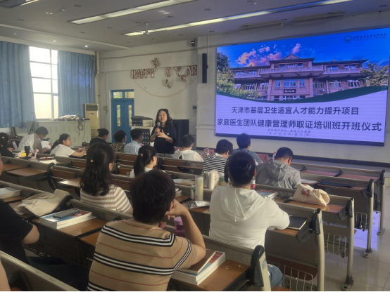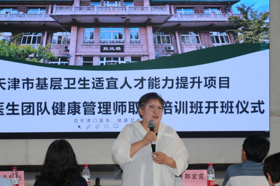 2024年5月31日,天津醫學高等專科學校衛生健康管理學院舉辦了2024年天津市基層衛生適宜人才能力提升項目家醫團隊健康管理師取證培訓開班儀式。此次培訓從5月31開始,到6月16日結束,一共分為兩期。來自天津市16個區的139名基層醫療機構的第一期家醫團隊人員參與了此次開班。開班儀式由本項目負責人郭宏霞老師主持,出席開班儀式的有繼續教育學院劉冬瑩院長,衛生健康管理學院蘭曉霞副院長、教學辦公室孟繁興主任及教研室所有老師。