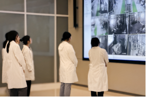 本次參觀研學區域主要為津藥藥業廠區,學生先參觀了生產車間智慧監控間,真實觀看到智能化一體化的先進生產流程,然后又進行了實驗室參觀學習,觀看實驗人員現場操作演示;最后到達會議室參加宣講會。