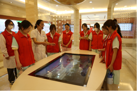 在參觀學習之后,由許英老師組織同學們到門診大廳及病房開展志愿服務,并組織同學們討論分享實踐感悟。