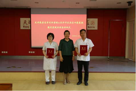 接下來,由馬克思主義學院杜美婷院長為武清區中醫醫院德育導師宋光明副院長和周嵐老師頒發德育導師聘書。武清區中醫醫院作為我校的實習基地,與我校有著長期的合作關系,雙方共同致力于教育教學、社會服務、人才培養的提升,本次特聘醫院領導、老師為我校思政德育導師,力圖將職業道德和醫學精神更好地融入思政課建設中,豐富學?!按笏颊n”體系,進一步落實立德樹人根本任務。