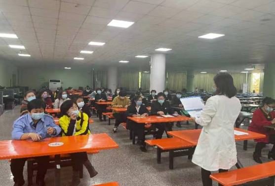 11月5日,技術指導組開展消毒專項培訓,培訓對象包括宿舍管理員、物業保潔人員、食堂從業人員、保安隊員。