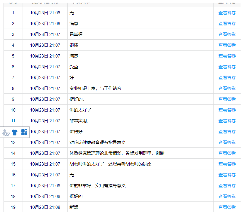 大多數(shù)學(xué)員表示,培訓(xùn)講師語(yǔ)言精煉、語(yǔ)速適中,培訓(xùn)內(nèi)容詳實(shí)、條理清晰、案例豐富、通俗易懂,結(jié)合社區(qū)特點(diǎn)、貼近社區(qū)工作、服務(wù)社區(qū)居民,易于實(shí)踐和掌握。學(xué)員表示受益匪淺,可以將培訓(xùn)內(nèi)容與臨床工作相結(jié)合,更好的為患者為社區(qū)居民服務(wù),從而提高大眾健康素養(yǎng)。