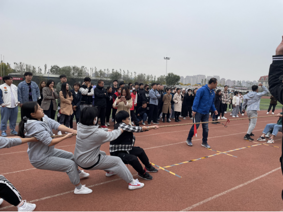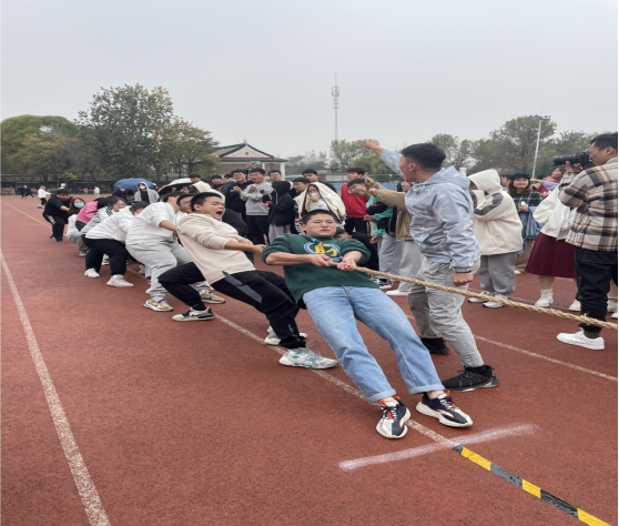 “拔河”比賽把整個運動場氛圍掀到了高潮,在這個實力比拼的賽場上,每個運動員更是咬緊牙關戰斗到最后,為團隊爭光。比賽現場歡聲笑語此起彼伏,大家興致勃勃,顯示了極大的參與熱情。運動場上參賽的同學激烈比拼,你爭我趕,場外老師、同學吶喊助威,他們用實際行動詮釋了競技與團結精神,更是團隊凝聚力的深刻體現。