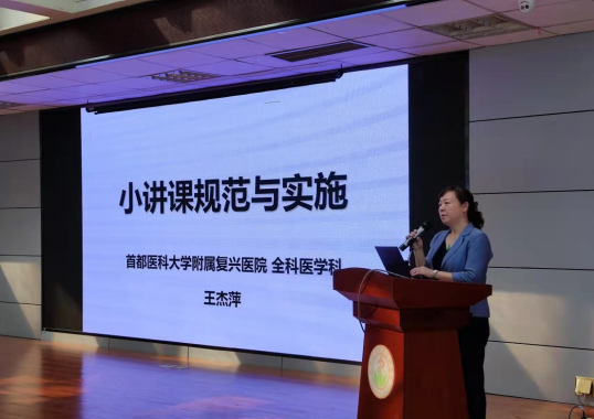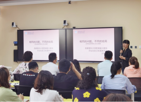 第一階段培訓主要面向來自基層醫療衛生機構的師資開展,34名學員完成全部課程學習。師資培訓采取現場小班授課和實踐技能訓練相結合的形式開展。中國醫師協會全科醫學分會副會長、首都醫科大學郭愛民教授為學員講授“全科教學特色”、“全科課程設計和授課技巧”兩個專題,并帶領學員完成PPT制作工作坊實踐教學,復興醫院全科教學基地王杰萍主任為學員進行“小講課規范與實施“的授課,武琳副教授做“如何開展基層門診教學“專題授課。首都醫科大學附屬復興醫院月壇社區衛生服務中心教學團隊孫艷格副主任等講授全科臨床思維系列講座“全科臨床思維1——相同的問題,不同的結局” 、“全科臨床思維2——30歲糖尿病,誰之過?”、“全科臨床思維3——令人頭疼的低血糖”、“全科臨床思維4——誰來拯救我的嗓子?”,以及“如何開展健康教育”。本次培訓還包括教學管理和人文理念的教學,如月壇社區衛生服務中心丁靜副主任的“基層實踐基地教學實施與管理”專題和北京朝陽醫院陳清教授“全科醫生與人際溝通”專題。