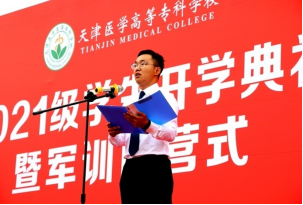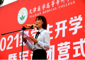 2021年9月18日,天津醫學高等??茖W校2021級開學典禮暨軍訓閉營式在學校操場召開,學校黨委書記陳振鋒、校長張彥文、副校長郝建軍、副校長王慶、紀檢委書記金濤,北辰區津彩青少年素質教育服務中心主任喬建生及學校各部門負責人和教職工代表出席儀式,黨委副書記、副校長左紅主持典禮。