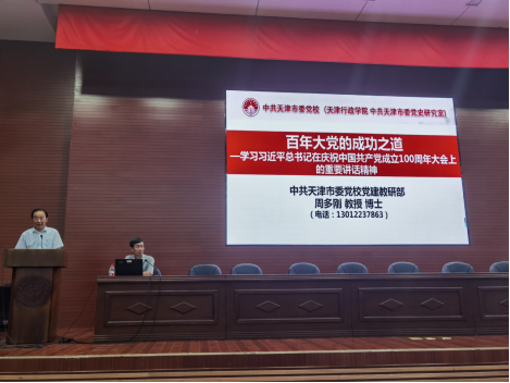 為深入推進黨史學習教育,7月22日學校邀請市委黨校周多剛教授為全體教職工講授“百年大黨的成功之道,學習習近平總書記在慶祝中國共產黨成立100周年大會上的重要講話精神”。