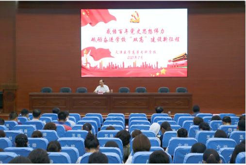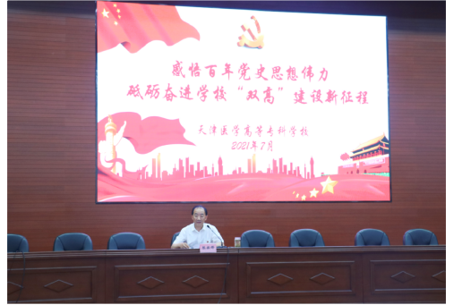 為進一步學習貫徹落實習近平總書記“七一”重要講話精神,再次掀起黨史學習教育高潮,7月15日下午,校黨委陳振鋒書記講授主題為“感悟百年黨史思想偉力砥礪奮進學校‘雙高’建設新征程”的黨史學習教育專題黨課,全校教職工參加。