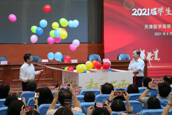 在典禮的最后,陳振鋒書記和張彥文校長與畢業生代表共同放飛了承載著夢想、希望和歡樂的彩色氣球,表達對畢業生的祝愿。愿2021屆畢業生不忘初心,勇往直前!愿歷盡千帆,歸來仍是少年!!