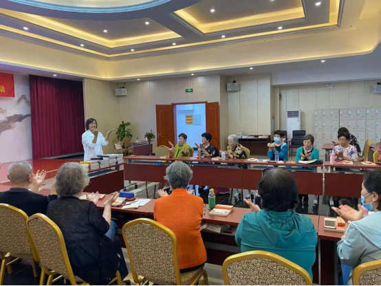 隨后,天津醫專衛生健康技術研究院負責人王芃老師結合社區老年的健康需求,開展了“一起為健康加油!——管理好自己的健康”的主題講座。針對老年性高血壓、冠心病、糖尿病等多發慢性疾病的臨床特點、先兆癥狀、疾病預后及老人自身健康維護、個人生活習慣養成等一一進行講解,幫助老年人保持良好狀態,享受健康生活。在互動環節中,大家積極踴躍提問,王芃老師做了耐心的解答,現場氣氛十分熱烈。