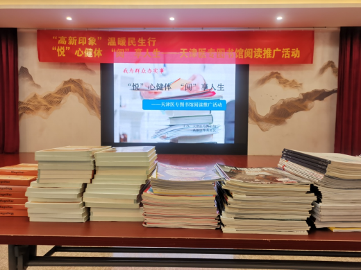為積極響應國家倡導的全民閱讀號召, 進一步加強我校閱讀推廣工作,創建閱讀推廣活動品牌,天津醫專圖書館于2021年5月27日上午,聯合天津市高新區華苑社區共同開展了“悅”心健體“閱”享人生——讀書進社區閱讀推廣活動。