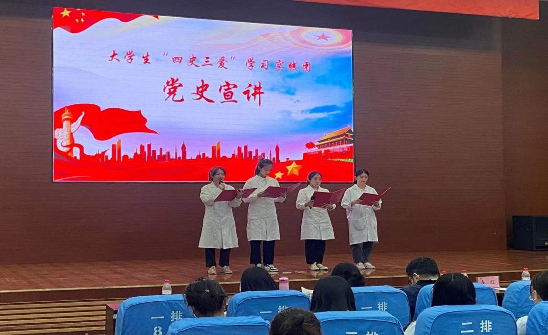 2021年是中國(guó)共產(chǎn)黨建黨100周年,為隆重慶祝黨的百年華誕,深入貫徹落實(shí)習(xí)近平總書記在黨史學(xué)習(xí)教育動(dòng)員大會(huì)上的重要講話精神,從黨的百年偉大奮斗歷程中汲取繼續(xù)前進(jìn)的智慧和力量,根據(jù)校黨委關(guān)于開展黨史學(xué)習(xí)教育工作的相關(guān)通知要求,藥檢醫(yī)療技術(shù)學(xué)工支部于2021年4月20日下午在報(bào)告廳組織召開黨史學(xué)習(xí)教育暨“四史三愛”學(xué)習(xí)實(shí)踐團(tuán)啟動(dòng)儀式,校黨委副書記、副校長(zhǎng)左紅出席啟動(dòng)儀式并為宣傳團(tuán)授旗,藥檢系、醫(yī)療技術(shù)系黨員及師生代表共200余人參會(huì)。