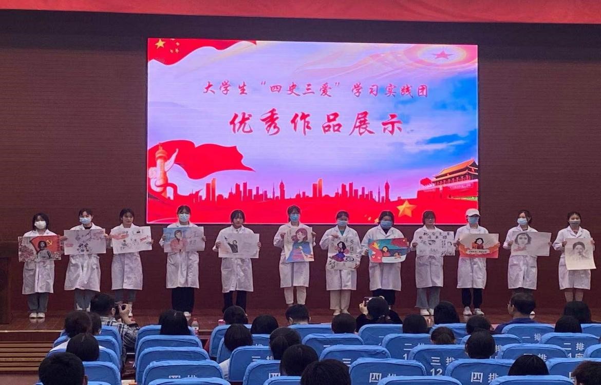 第六項(xiàng)議程由2020級(jí)醫(yī)學(xué)美容技術(shù)專業(yè)展示黨史學(xué)習(xí)成果。醫(yī)學(xué)美容技術(shù)專業(yè)同學(xué)將黨史學(xué)習(xí)教育與專業(yè)學(xué)習(xí)相結(jié)合,為此次宣講團(tuán)啟動(dòng)儀式專門繪制了“傳承紅色基因向英雄人物致敬”為主題的宣傳畫。