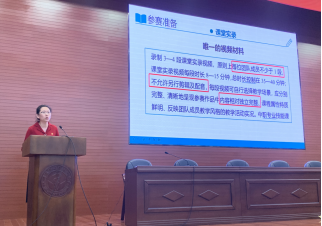 會上,景文莉處長回顧了我校近十年的參賽歷程和取得的突出成績,結合實際案例重點剖析比賽文件要求與評分指標,并對參賽團隊的遴選、參賽內容的選取、參賽材料的準備提出明確要求,最后與全體教師分享了決賽現場的情況和經驗。景文莉處長在報告中提出,教學能力比賽的過程是團隊教師成長、歷練、蛻變的過程,教師不斷打開思路、轉變教學理念,進一步開闊了眼界、提升了教學水平。經過大賽歷練的教師成長為教學的骨干和中堅力量,并影響帶動其他教師共同成長。