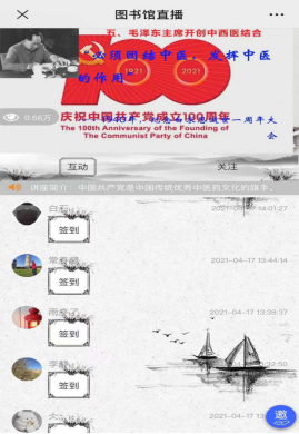 講座在天津圖書館文化中心館4樓會議室舉行,并由樂直播同步線上直播,共有6000人觀看。我校醫學系組織三個專業的學生共同觀看學習,為同學們進行了一次極生動的黨史宣講。講座在同學們之間取得了熱烈反響,引發同學們激烈討論。同學們表示此講座是一次生動的主題教育,使他們了解了中國共產黨引領中醫藥事業發展的歷程,堅定了學好醫學知識、發揚祖國中醫藥事業的決心和信念。