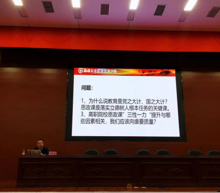 14時,講座正式開始。王學利教授從多維度分析高等職業教育的重要性。他站在“百年未有之大變局”的視野下,立足“中華民族偉大復興”的戰略全局看高職教育,結合中國制造“2025”時代背景,提出辦好高等職業教育是重要使命。隨后他從教育對象的類型性、教育主體的復合性、教育內容的職業性、教育過程的實踐性等方面對高校思想政治工作進行全面解讀,并以“辦好思政課,守好一段渠,種好責任田”為題進行了課程育人的經驗分享,作“以案例為導引,以問題為核心的探究式專題化教學模式”專題介紹。王教授的精彩發言引起在座教師熱烈反響。
