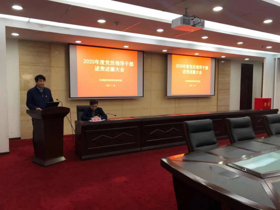 2021年1月20日下午,學校召開2020年度領導班子成員述責述廉大會,學校全體領導班子成員參會,紀委書記金濤同志主持會議,與會人員還有學校中層干部、高級知識分子、教代會執委和民主黨派負責人。