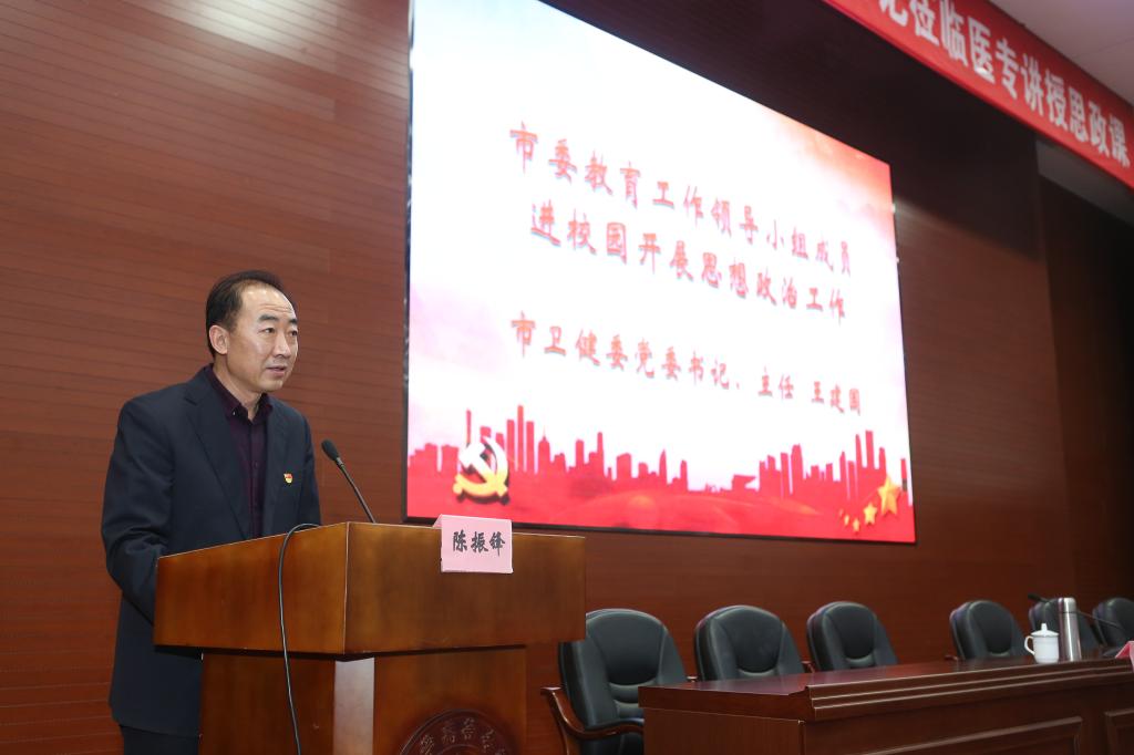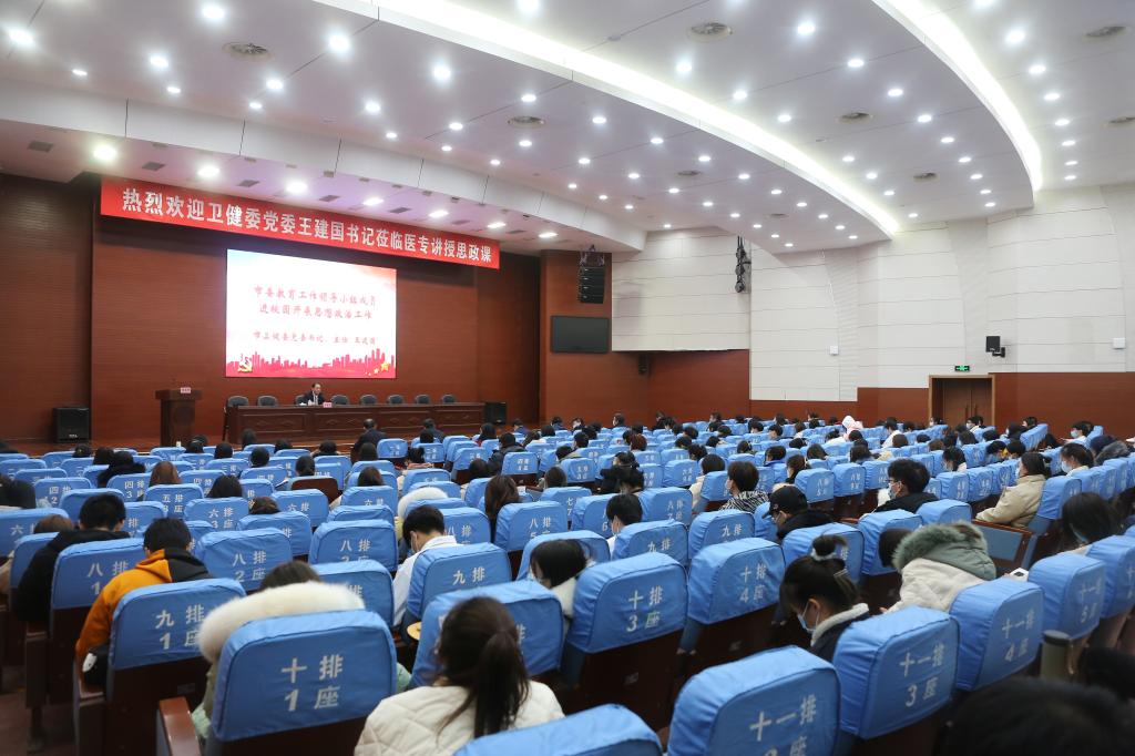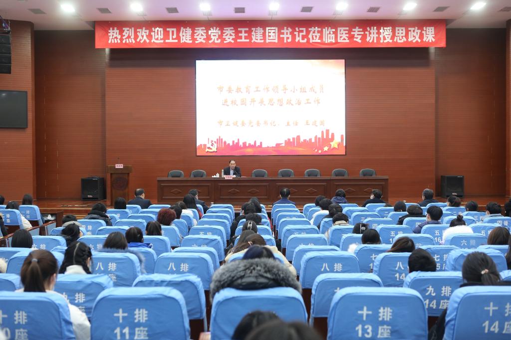 為貫徹落實習近平總書記關(guān)于思政工作重要講話精神和全國高校思政工作會議精神,落實立德樹人根本任務(wù),按照市教委下發(fā)的《關(guān)于領(lǐng)導干部進校園開展思想政治工作的通知》要求,市衛(wèi)健委黨委書記、主任王建國同志于12月23日到我校進行思政工作調(diào)研并走上講臺為師生們講授思政課。