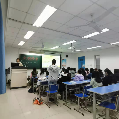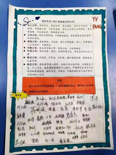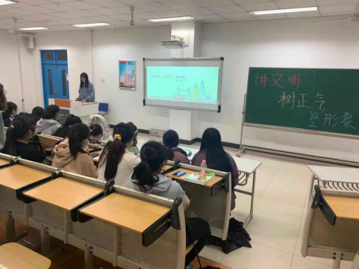 活動過程中,護理系學工支部各班召開了“文明修身”主題班會,在班會中,各班輔導員老師對文明行為進行主題宣講。全體學生充分學習了在校期間的各項管理制度,以班級為單位制定、簽署了《班級文明公約》。此外,各班還設立了“班級文明督察員”,對本班學生在校園、宿舍、教室等區域的不文明行為進行督查。
