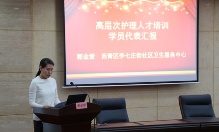 華苑街社區衛生服務中心楊青書記代表南開區華苑工作坊培訓基地發言,張穎醫生和郭金愛護士長作為學員代表發言。李剛副處長、王慶副校長、葉波副總裁、劉冬瑩處長共同給學員頒發培訓結業證書。