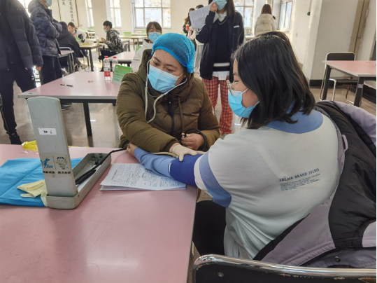 活動現場,參加獻血的同學們在工作人員及學生志愿者的引導下,依次進行登記、體檢、化驗、抽血等流程,現場井然有序。有的同學是第一次參加獻血,表現出了緊張的情緒,但在輔導員、同學們、志愿者們溫情的陪伴與鼓勵下,在醫護人員的疏導與照顧下,他們漸漸放松了下來,順利完成了獻血。采血現場外,各學工支部書記、各班輔導員也在現場關心著同學們,成為了同學們堅強的后盾。