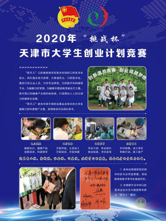 “口腔專業創新創業導師工作室”是為貫徹落實《“健康中國2030”規劃綱要》和《中國防治慢性病中長期規劃》,深入推進“三減三健”健康口腔行動應運而生。工作室研究目標為口腔醫學、口腔醫學技術、口腔護理專業大學生創新創業項目孵化。前期已開展貫通學歷教育和崗位培訓的“醫師堂”項目,立足京津冀,輻射全國的師資培訓,師生共創“口腔解剖虛擬教學平臺”,醫教協同聯合編寫全國衛生職業教育實驗實訓‘十三五’規劃教材,專創融合,打造面向人人的云端口腔健康生態圈。工作室團隊成員老師均具有醫學背景,多次指導學生參加校級及市級各項創新創業大賽并獲得市級獎項,孵育出“萌芽兒項目”今年也成功入圍2020年團中央“挑戰杯”中國大學生創業計劃競賽決賽,團隊成員老師均從事專業教學及創新創業教育,其中六人具有國家級執業醫師證書。工作室將致力于培養創新創業復合型人才,探索口腔醫學專業學生獲取職業等級證書。深化教育扶貧、醫療扶貧,借助職教集團幫扶院校資源,加強創新創業紅旅賽道項目培育,加強專業化的創新創業引導。以技術創新為紐帶,面向行業開展口腔健康技術應用推廣服務。
