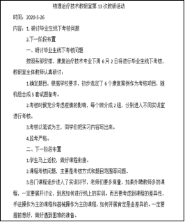 3.加強(qiáng)線上教研與聽課。各教研室積極組織線上集體教研,本周分別開展了關(guān)于復(fù)課及期末考試安排、復(fù)課緊急情況應(yīng)急措施培訓(xùn)、共同研討實驗內(nèi)容的集體教研共52次。加強(qiáng)課堂監(jiān)督,組織深入在線教學(xué)課堂,本周共開展學(xué)校、系部、教研室及教師層面聽課93人次,從反饋結(jié)果看,教學(xué)井然有序,質(zhì)量評價良好。