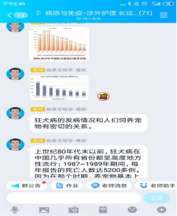 在病理學線上實驗教學中,選取豐富實驗教學資源,并上傳線上教學平臺,學生通過課前預習病理學資源庫的實驗課程視頻,教師通過使用顯微鏡室的光學顯微鏡采取顯微攝影技術拍攝真實的鏡下圖像,通過云課堂頭腦風暴和討論等形式將鏡下圖像上傳網絡,讓學生認真觀察后,說出病變并指認結構,達到了與在實驗室現場觀察一樣的真實效果。結合數字切片講解視頻讓學生掌握病變內容,線上課程群講解結合病例分析完成實驗課在線教學。