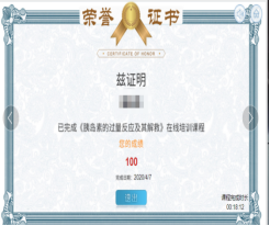 藥理學教研室在本學期實驗課教學中,對護理專業、口腔醫學專業、預防醫學專業采用虛擬仿真實驗教學平臺進行線上教學。學生經過在線實驗課學習,進行實驗模擬獲得培訓證書。疫情期間線上虛擬實驗的開展,填補了藥理學實驗用藥品和實驗形式的空白。尤其在護理專業線上虛擬實驗教學內容的選取上,對接護士執業資格考試考點,對重點知識點進行講解,如有機磷酸酯類藥物的中毒和解救實驗,通過虛擬實驗教學彌補了理論教學的缺陷和不足,加強學生對護資考中藥理學知識的認知能力。線上虛擬實驗教學增強了老師們的實驗教學能力,為藥理學虛擬實驗的開發和應用拓展了空間。