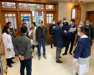 下午2點,實地檢查組由陳振鋒書記、郝建軍副校長、劉衛副校長帶領各負責處室對校內的防疫物資、后勤物資儲備、健康檢測、環境整治等進行了實地查看、隨機訪談以及現場詢問。針對防疫工作以及疫情緊急處置流程進行了現場演示以及現場演練。