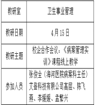3.加強線上教研與聽課。各教研室扎實開展線上集體教研,加強外聘教師教研,并與天津市口腔醫院、海河醫院病案科、艾登科技有限公司開展校院/企聯合教研,以研促教,教研相長。本周開展了以線上教學經驗交流、線上課程建設、17級畢業考核安排、綜合技能實訓課程線上教學組織、線上期中考試部署等為主題的線上集體教研共38次。同時,切實落實線上聽課,本周共開展學校、系部、教研室及教師層面聽課81人次,及時了解教學實施過程,加強對線上教學工作的指導、督促與服務。