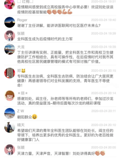 閻渭清主任醫師牽頭組織的天津青年全科沙龍,探索搭建線上活動平臺,組織奮戰在基層的青年全科人開展了連續11天的《新冠病毒感染基層防控指導意見》系列解讀活動,活動時間自3月14日到24日,累計觀看3134人次,互動留言646條。參與此次系列解讀基層年輕醫生們結合自身工作實際,分享經驗和教訓,互動討論十分熱烈。此次活動得到了衛健委領導的支持和全國各地全科專家和同道們的熱情關注和支持。解讀活動最后一天,天津醫學會全科醫學分會劉光宗主任蒞臨直播間與大家交流,對此次解讀活動給予充分肯定,認為這次活動展現了天津在全國疫情防控中令人贊嘆的天津聲音、天津智慧和天津力量。